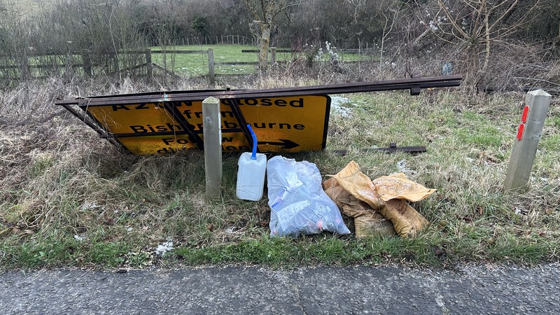 Asbestos dumped along Westcourt Downs, Shepherdswell. Reported to DDC under 00005436